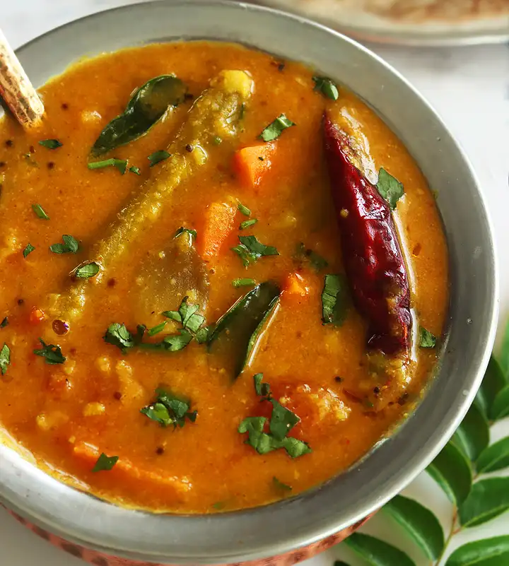 Kerala Style Sambar (Vegetable mixed curry with mild to moderate gravy)